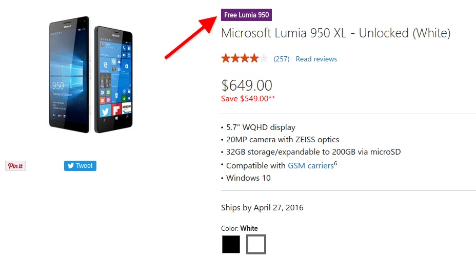 有報導指 Microsoft 在美國官網推出了買一送一優惠,顧客只要購買一部原價 649 美元,現在減價至 549 美元的 Lumia 950XL,就會免費獲贈一部同樣 549 美元的 Lumia 950。兩部手機均為無 SIM 卡鎖的零售版本,可算是為了清貨賣大包。Microsoft 希望透過減價促銷,吸引更多人試用 Windows 手機的意圖非常明顯,然而 Windows 手機平台的 Apps 數目不多一直為人詬病,對於一直使用 Windows 手機的用戶來說,不少都在期待著傳聞已久的 Surface Phone,Lumia 950 和 950XL 的興趣始終不大。