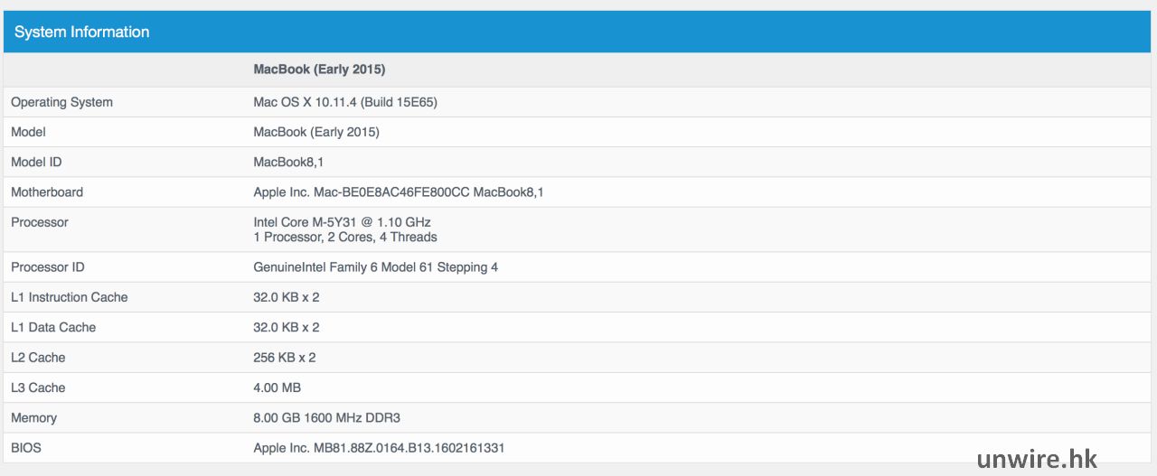 ▲上圖第一張是第一代 MacBook 的規格,而第二張是第二代最新 MacBook 的規格,可見新機處理器用上 Intel Core m5-6Y54 1.1GHz 雙核心處理器,而記憶體雖然同樣是 8GB,但時脈就更快,由 1600MHz 提升至 1867MHz。