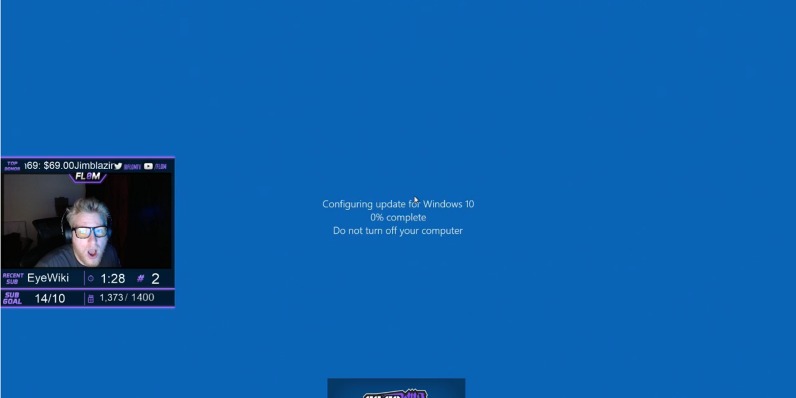 電腦用戶應該對系統更新接受程度較高,很多時系統更新都為了提供更佳的安全保障,有時候亦會提供新功能。不過強迫用戶升級,或在工作期間突然出現升級畫面,就令人不勝煩擾。早陣子不少用戶都被 Microsoft 的 Windows 10 升級搞得一頭霧水,就連系統更新亦同樣煩到冇朋友。上星期外國一名新聞報道員在報天氣時,螢幕突然彈出 Windows 更新畫面成為全球笑話,日前著名電玩玩家 Erik Flom 在直播時又出現同樣情況,當著 13 萬觀眾面前,畫面突然被 Windows 10 的系統更新藍畫面打斷,而玩家據說當時已經關掉自動更新功能。