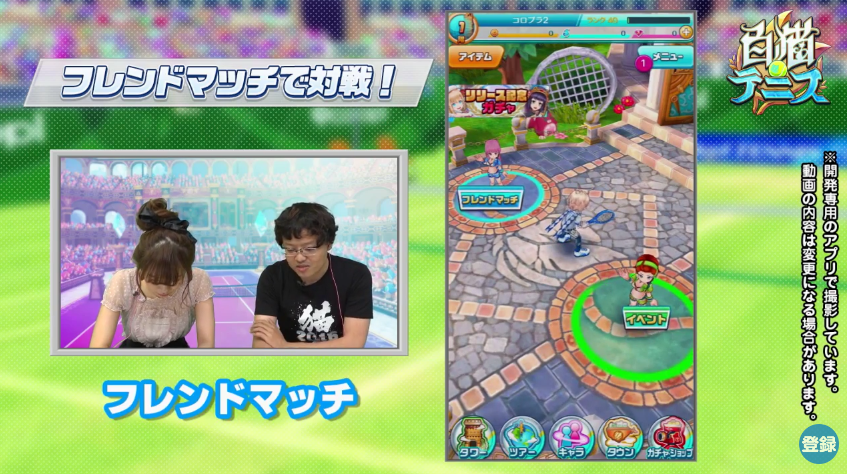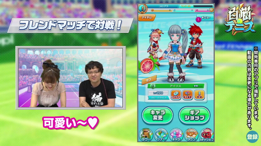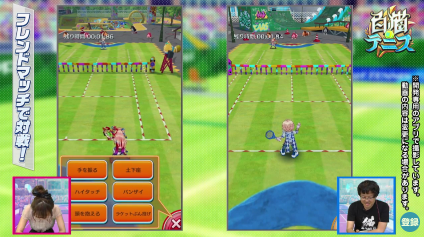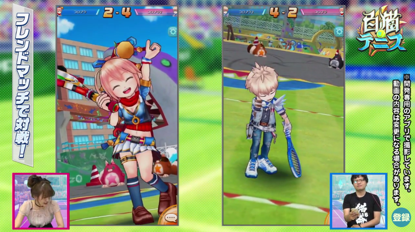 Colopl 今日公佈新作《白貓 Tennis》,繼續由白貓 Project 的製作人淺井 P 及女主持早川,以影片同大家講解。遊戲簡單來講就是用白貓的角色,三人一組來打網球,玩家可以 1 ON 1 或者 4 Players 二對二雙打。遊戲的操作也很簡單,可以像 白貓 Project 那樣單手就可完整操作,在內可以切換角色、在右邊進行高低波的調教及使用必殺技。