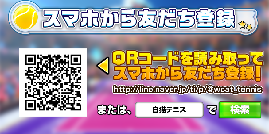 白貓 Tennis 預定在今年夏季推出,現時開始可進行事前登錄,不過型式是全體玩家獎勵式,登錄數到一定數量就會派禮特定禮物。方法是需要使用 LINE 來加入「白貓 Tennis」帳號成為朋友。