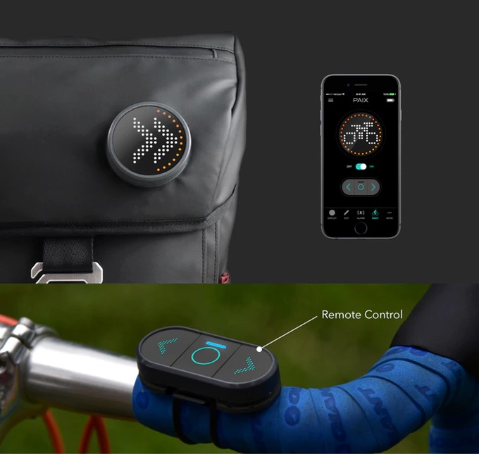 Backpaix 有一個可拆式 LCD 顯示襟章,通過手機操控,能夠顯示不同 Emoji 表情符號。在騎單車時,只要調整至單車模式,這個襟章就可以代替打燈,讓後面的駕駛者知道你準備轉向或停車。Backpaix 背囊還有其他附加功能,例如加入 10,000mAh 電池為電子裝置充電、在肩帶安裝 GoPro 相機、內置 Geofencing 功能,在背囊離自己太遠時透過手機提醒等。