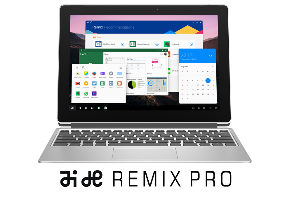 Remix Pro 2-in-1 平板筆電是一塊 12 吋平板,配合鍵盤 Dock,可以當作筆電或平板電腦使用。其屏幕解像度為 2160 x 1440,搭配 Qualcomm Snapdragon 652 處理器、Adreno 510 圖像處理器、3GB RAM 和 32GB 儲存,可以 microSD 作擴充。其 9000mAh 電池擁有 Quick Charge 快速充電功能。