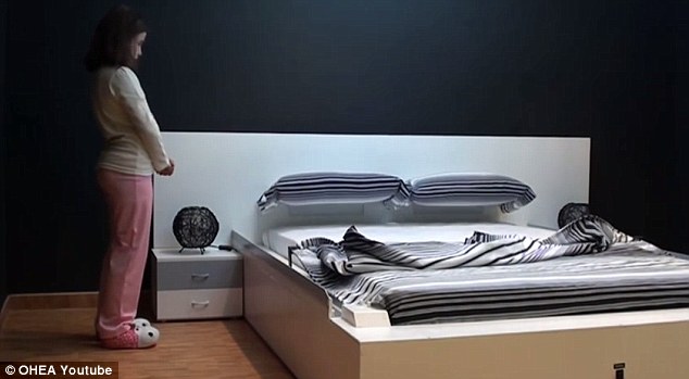 這款名叫 OHEA 的智能電動床,床邊兩側各有一條機械臂和滾軸,用戶只要按一下按鈕,機械臂就會將被單由床尾拉到床頭,然後承托枕頭的架會自動升起,被單就可以整齊地平鋪在枕頭下面,整個過程大概需時 50 秒。既然是智能床,除了人手操控,OHEA 亦有自動感應功能,在用戶起床後 3 秒就會自動開始整理床鋪的程序。