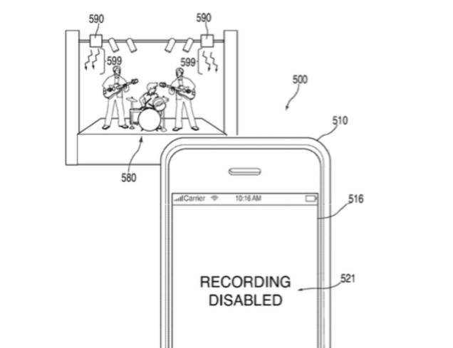 根據專利文件,Apple 舉例一隊樂隊在表演時,手機屏幕會出現「禁止攝錄」的畫面。不少歌手例如 Adele 和 Jack White 都曾經對觀眾在演唱會拍攝表達不滿,今次 Apple 的專利除了保障歌手和演唱會主辦商的版權,同時亦令觀眾可以在演唱會時更投入,避免分心。