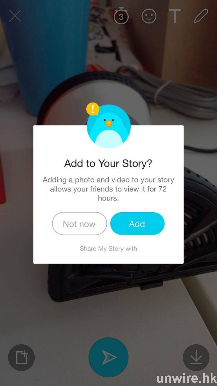 ▲ 拍照可以加到自己的「Stories」內,72 小時後便會刪除。