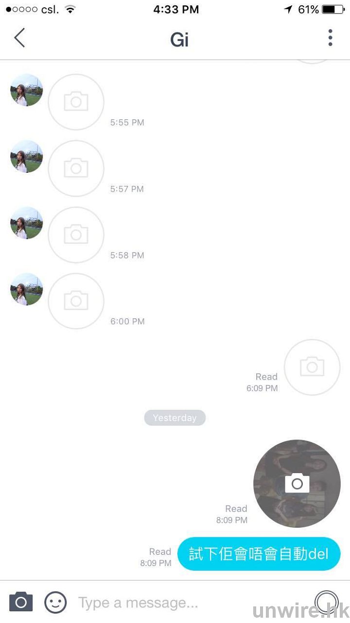 不過要留意,文字並沒有「看後即毀」,所以用者要小心說話,不然被「cap 圖」也會釀成「關公」的。