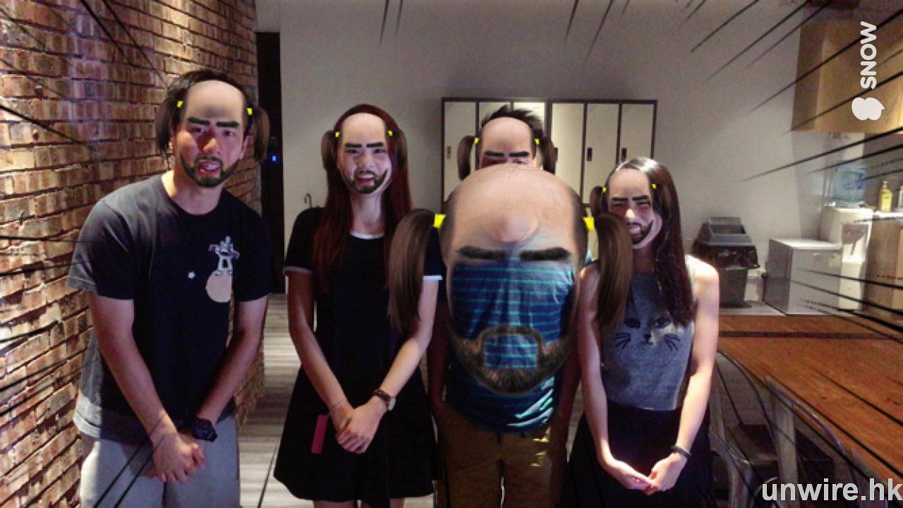有些 App 同樣具有換面功能,但是只支援兩人。若想一大班人玩,就可以用 SNOW 了,它可以支援四人以上換面,將一個表情套在所有人、或是將所有人的表情互換,能夠做到好有趣的效果。