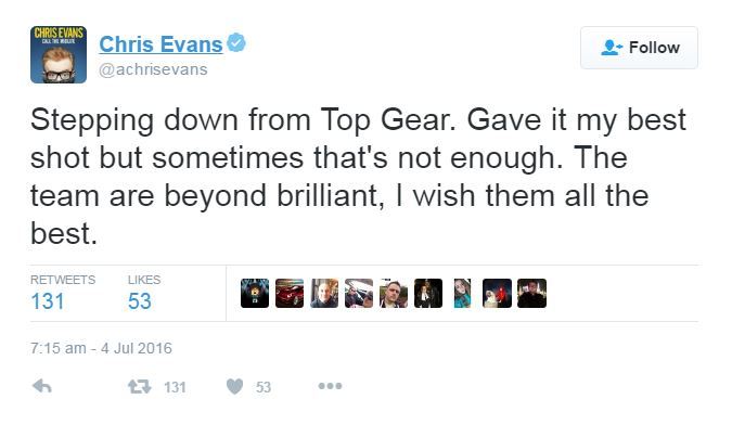 在剛過去的週末,新一季的英國 BBC 王牌汽車節目《Top Gear》正式完結,在 Jeremy Clarkson、James May 和 Richard Hammond 離開後,換上了當地著名 DJ Chris Evans 領軍,可惜觀眾似乎對這名聲大大的主持人有彈冇讚,經過 6 集之後,Evans 日前亦宣佈劈炮。