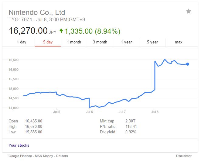 無論如何,《Pokemon Go》的熱潮都為任天堂帶來名與利。除了全球媒體的廣泛報導,遊戲在美國推出首日,就成為了免費遊戲的下載首位。更重要的是,當《Pokemon Go》推出後,任天堂在東京證券交易所的股價上升了 9%;不過遊戲似乎太受歡迎,伺服器負荷不了。