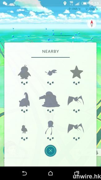 -熒幕右下角會有一個 Nearby,一開始已經會顯示圈入面會出現的精靈。點擊 Nearby,會睇到附近小精靈同自己的距離,第一行左上角的精靈是距離自己最近,而右下角則最遠