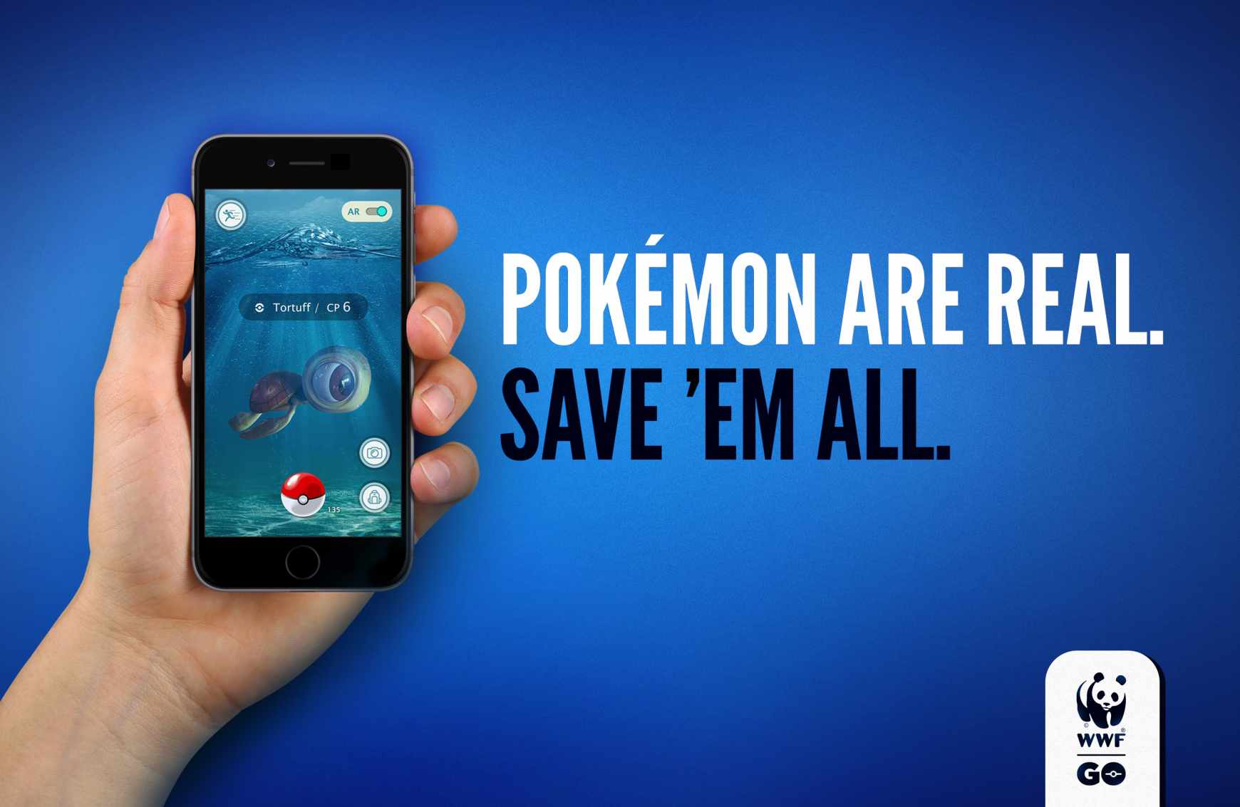最近 WWF(世界自然基金會)就藉著《Pokemon Go》熱潮,於法國推出 3 款全新廣告宣傳。WWF 用上熊貓、海龜和老虎,代替 3 款小精靈;並以「Pokemon are real. Save’em all」取代遊戲的宣傳語「Pokemon Catch’em all」,期望教育市民好好保育和小精靈一樣可愛和珍貴的動物。