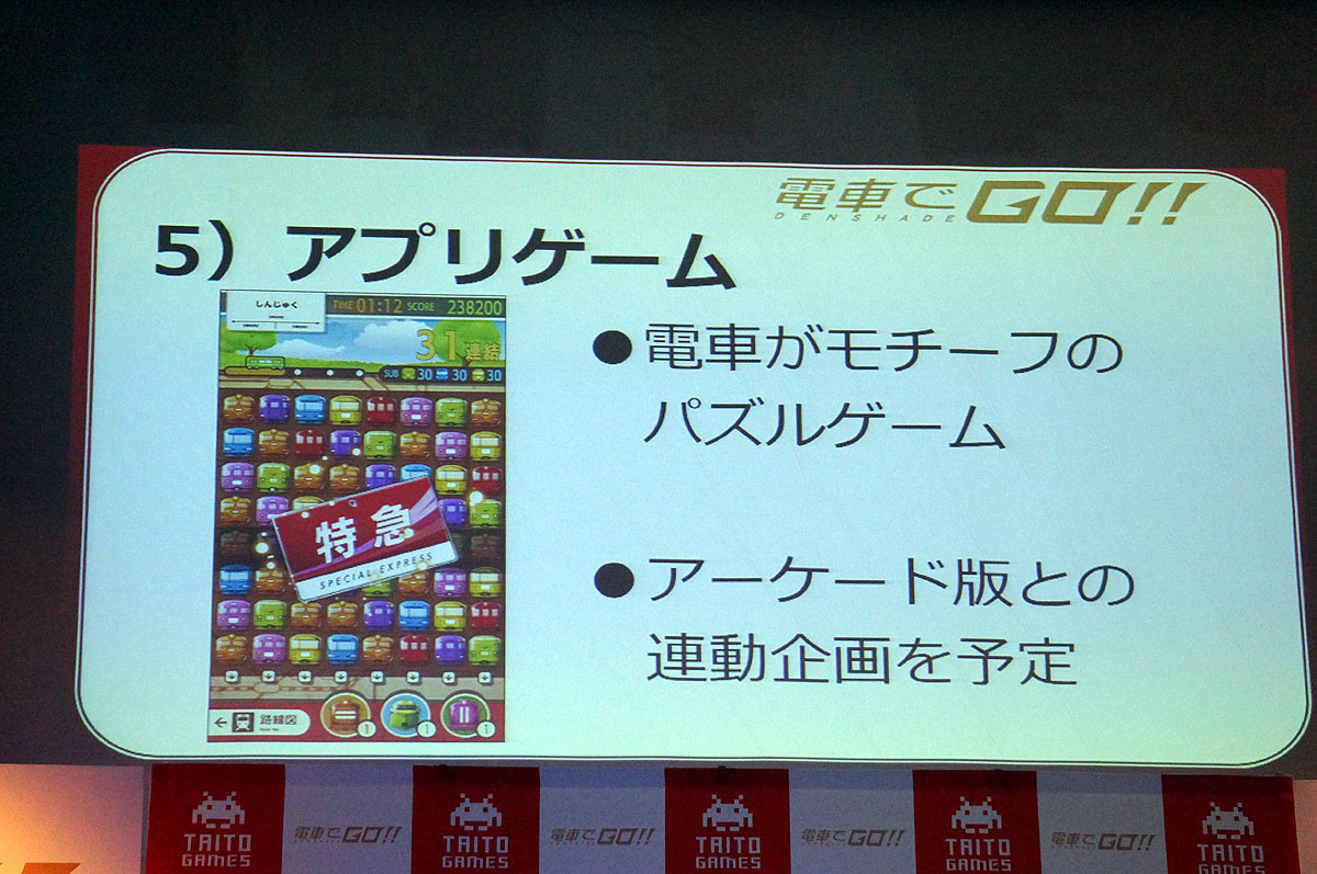 至於手機遊戲《連結!電車でGo!!》則和模擬駕駛列車完全無關,以益智磚塊遊戲模式出現。Taito 亦透露,正在研究開發 VR 版的《電車でGo!!》,不過就未有公開其他細節。