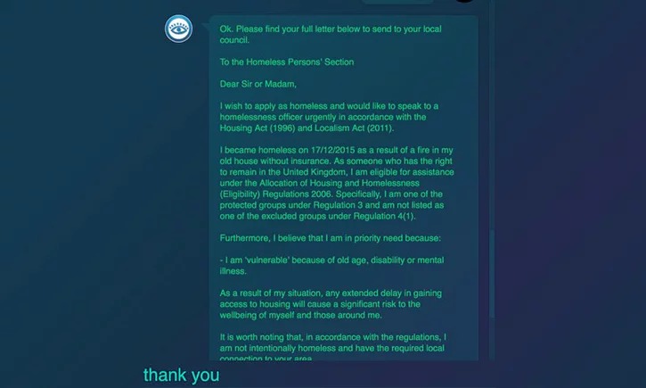 無論在香港還是外國,要找律師處理法律事務都不便宜,對於低下階層更加難以負擔。在史丹福大學就讀,現年 19 歲的倫敦男生 Joshua Browder 於是想到利用 Chatbot 機械人,為窮苦大眾,尤其是無家可歸的人提供免費法律服務。
