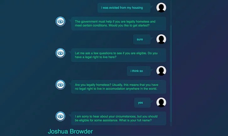 及後 Browder 發現英國有不少人,因為被業主趕走或收回單位而無家可歸,於是他將 DoNotPay 的 ChatBot 加入協助他們的功能。透過義務律師團隊的資料和公開資料守則,Browder 找到了公屋申請批核和被拒的原因,再利用 Chatbot 向求助人發問問題,然後將得到的資料自動編寫成正式,而且對申請者有利的法律文書,向市政府申請緊急房屋。服務在星期三正式提供,Browder 表示已經有人正在使用。他希望將 DoNotPay 的服務伸延至紐約和三藩市,因為無家可歸的問題全球皆有。