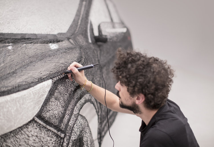 團隊採用 3Doodler 的 Create 3D Pen 進行這個項目。透過將塑膠材料以 230 度攝氏的高溫溶解成 0.7mm 直徑的膠條,藝術家然後逐筆逐筆凌空勾劃出 1:1 的 Qashqai 立體雕塑。這個全球最大的 3D Pen 雕塑單單塑膠素材就用了 13.8 公里,並花了團隊 3 個禮拜,共 800 工作小時才完成。