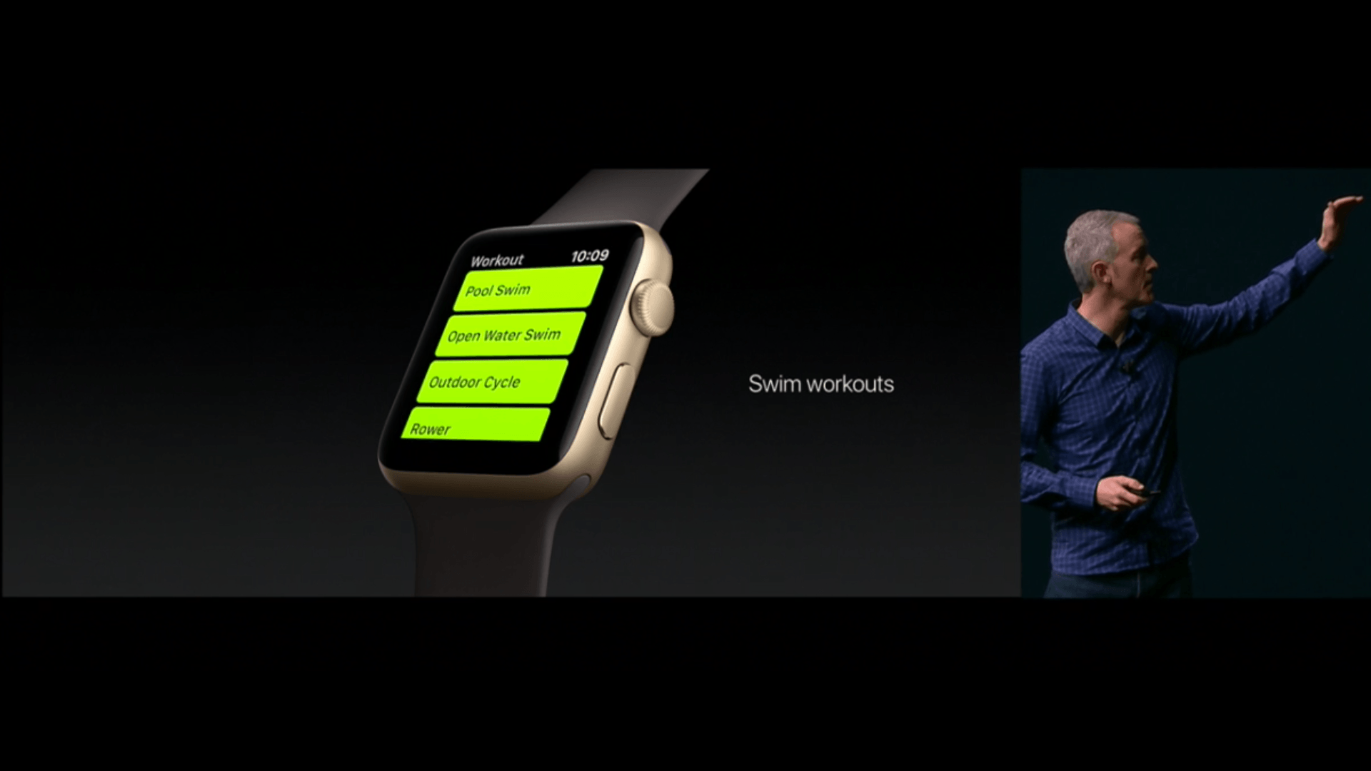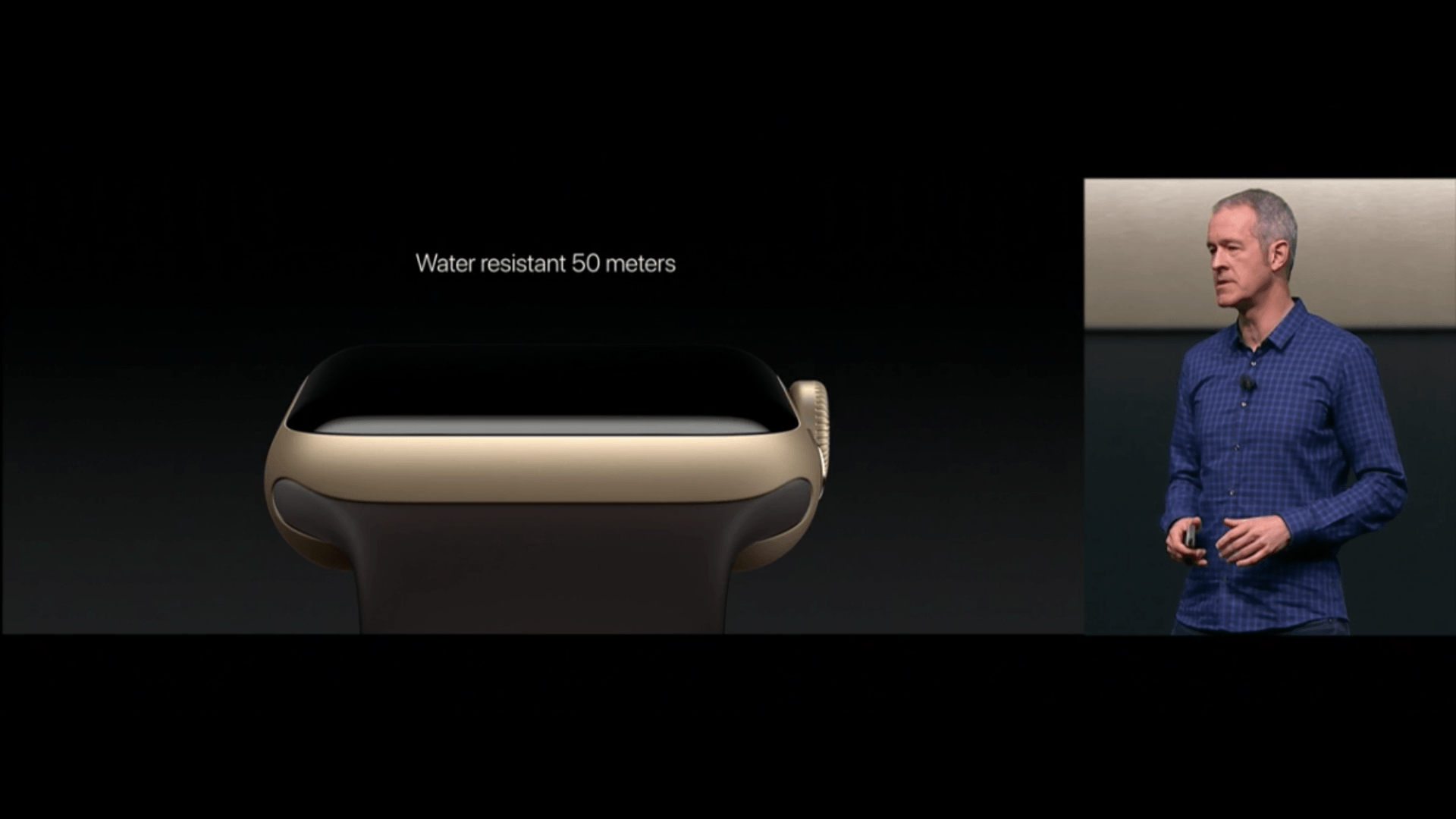 今代 AW2,採用了完全防水設計,雖然未有表示防水級數,但在記者會中 Apple 就指出 AW2 不只是生活防水,而且是可以戴著游水甚至滑浪,換言之就連海水都可以防到,而深度最深可達到 50 米,相信已足夠一般用家使用。此外,AW2 的喇叭亦獲重新設計,喇叭發聲震動時可同時將水份震出錶外,達到防水效果。而 AW2 亦內建了全新的游泳運動模式,令大家可以戴著游水並紀錄距離、心跳等。