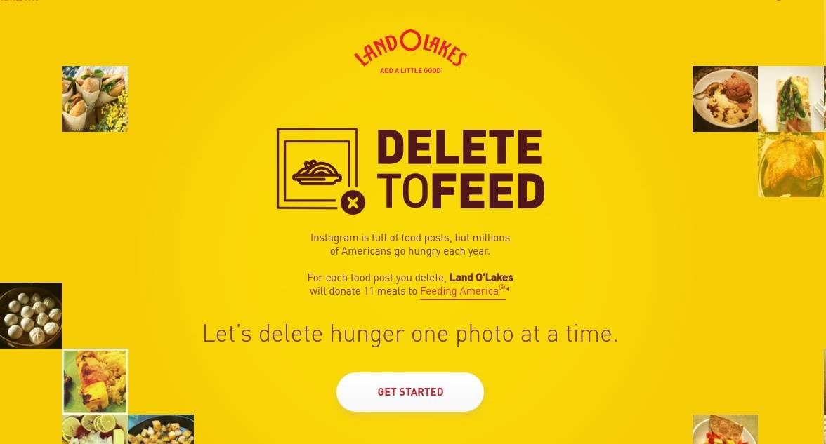 食品公司 Land O’ Lakes 日前宣佈一項 Delete to Feed 慈善推廣活動,Instagram 用戶只要透過該公司的網站登入 Instagram 帳號,然後將不要的食物照片刪除。每一張刪除的相片,Land O’ Lakes 就會捐出 11 份食物到明尼蘇達州的食物銀行。別以為在美國舉行這類捐贈食物的活動沒有意義,其實現時美國仍然有 13% 的家庭面對糧食不足的問題,每 6 名小童中就有 1 名要為下一餐憂慮。
