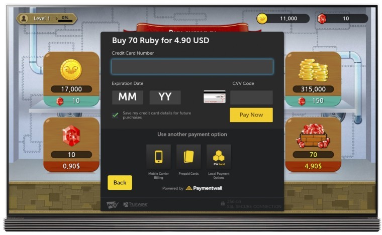 LG 和 Paymentwall 合作推出全新支付系統,用戶毋須再使用手機或電腦登入,直接在智能電視螢幕前就可以完成購買電視節目、Apps 和遊戲的交易。LG 表示,支付功能支援全球超過 200 個國家,共 140 多種包括 Visa、MasterCard、Alipay 等不同的支付方式。用戶可以透過使用遙控,或者在其他裝置,例如手機平板完成交易,亦可以利用 QR Code 掃描支付。使用 webOS 3.0 系統的 LG 智能電視用戶,只要輸入信用卡資料和完成設定,當購買窗口彈出時,從上述三種付款方式作選擇即可。