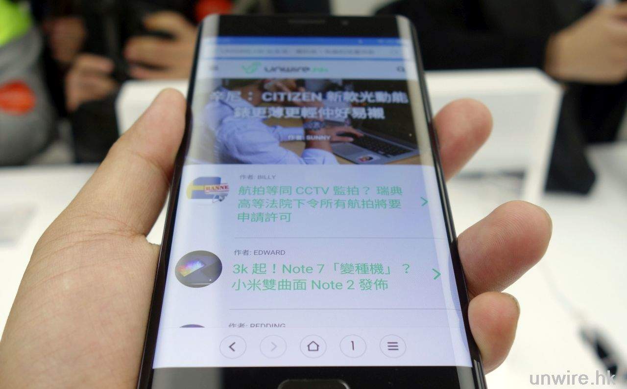 ▲與 Note 7 一樣,小米 Note 2 也是採用雙曲面熒幕。