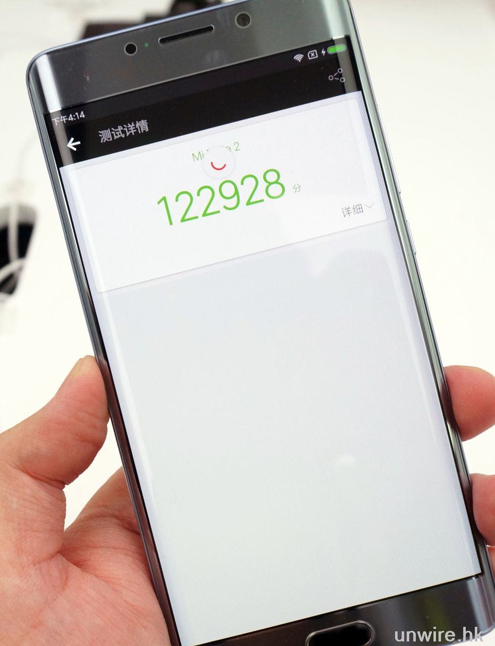 ▲那麼頂配版的效能又如何?筆者用安兔兔評測測到有 122,928 分,與小米 MIX 相若。