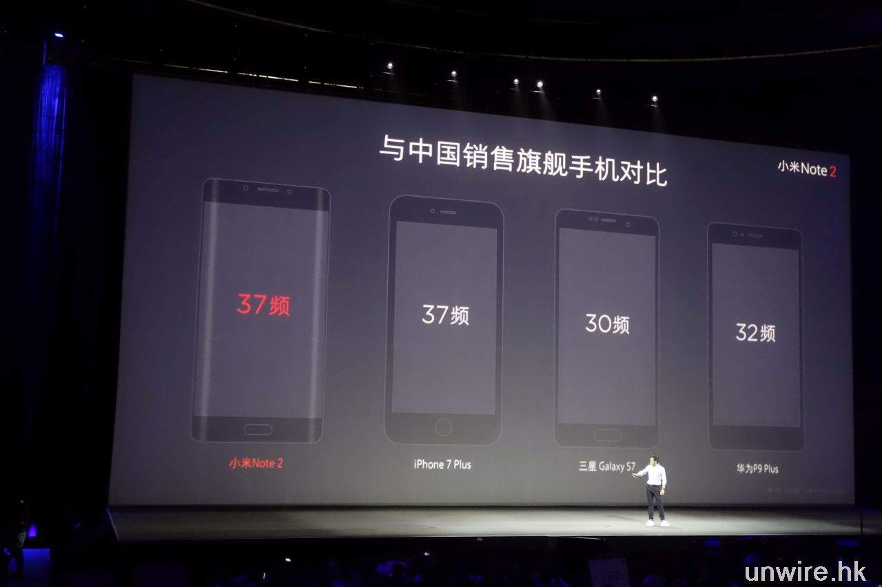 ▲據官方表示,與其他品牌手機比較,只有 iPhone 7 Plus 的 4G 頻段是與小米 Note 2 一樣的。