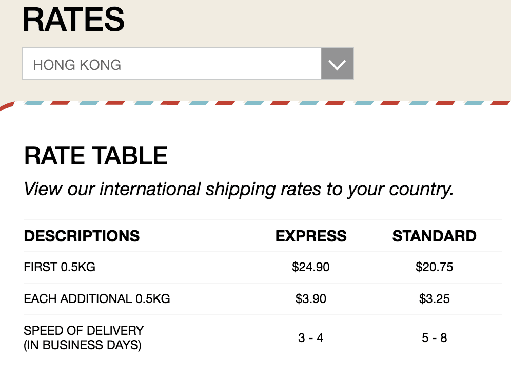 ▲ us-ex 收費以每磅計算,首磅為 US$10,其後每磅加 US$4。