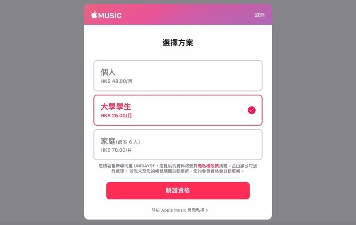 Apple 日前宣佈一個針對大學生的好消息,就是在歐美地區推出多時的 Apple Music 學生半價優惠,終於正式登陸香港。今次 Apple Music 優惠在全球 25 個國家推出,令全球 32 個國家的大學生能夠半價使用 Apple Music 服務。香港的大學生優惠約為正價一半,只需 25 港元。