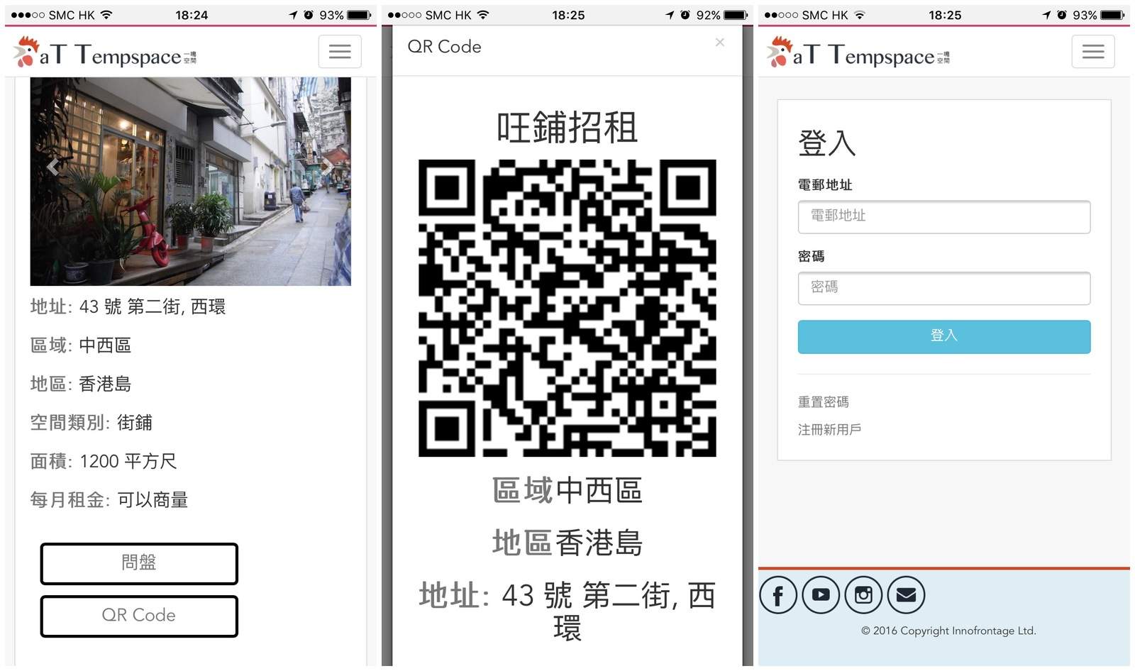 因此,她及合作伙伴 Sunny 製作出一個網上平台,讓業主及地產經紀上載店舖資料,如位置、平面圖、照片等。填好「街招」的內容後,更可製作包含 QR code 連結的實體街招,貼出來的時候,就可同時提供更多資訊。而除了貼街招,aT Tempspace 亦提供一個聊天室讓有意承租者及業主或地產經紀接洽,令有意承租者不必再擔心要各他們公開自己的聯絡資料。目前網上平台供免費使用,推出不足一個星期,有約 40 個店舖於網上招租。