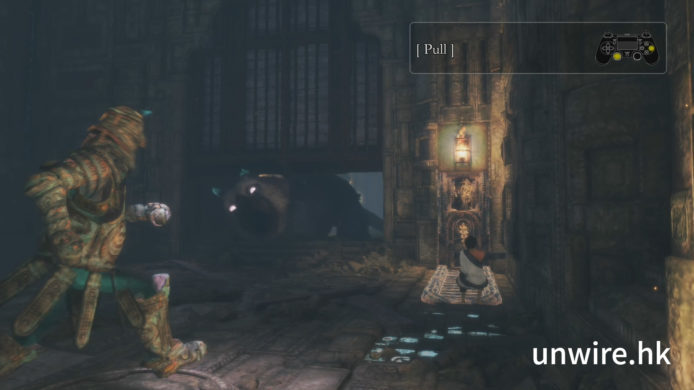 ▲解謎元素方面,由於人鷹的體積有別,一些場景只容許少年通過。而少年要打開場景內某些機關,之後玩家要按控制器R1呼叫巨鷹過來,讓巨鷹也能通過跟少年一起脫險。