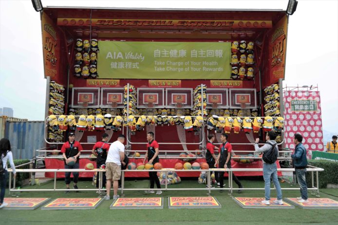 灌籃類 – 灌籃的攤位遊戲,三年來的公仔都是非常吸引的!今年除了上圖的 minions 外,還有另外兩檔是史迪仔和醫神 Baymax ,是不是很想要呢?不過公仔那麼吸引,當然是有代價的:投入一球是小獎﹑兩球中獎… 如此類推,但這類遊戲就算是「籃神」也是很講運氣才能中獎,值不值得玩就看你有多大的決心要這公仔了!