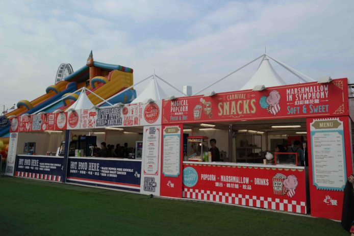 今年 AIA 的小食攤位就集中在嘉年華正中央,要找食物飲品都可以直接在那邊買。上年食物的選擇並不多,小食攤位亦遍佈嘉年華的角落位,不好找之餘,價錢亦較高以 $80-100 為主。不過今年的小食攤位不但更集中,而且價錢也較公道,主要由 $30 – $60 不等,而且食物的選擇亦多了:漢堡﹑腸類﹑港式小食﹑爆谷,甚至是原隻烤雞也有,真的餓了也不必為了荷包大傷而等到離開才找東西吃了。