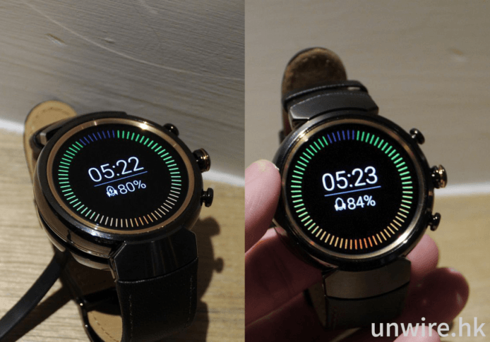 值得一提的是 ZenWatch 3 的快充技術頗令人眼前一亮,15分鐘可以充電 60%,筆者剛才試玩後,電量剩下 50%,筆者放低 15 分鐘充電,已經差不多充到 90%,不過提醒一下,充電時錶身其實頗熱,還是不要同時使用好。而且,充電底座的也不是設計給用家邊用邊充的。
