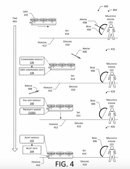 針對人為的惡意破壞,Amazon 亦作出了類似的考慮。Amazon 以弓箭襲擊作為考慮,無人機會偵測攻擊物箭頭的存在,然後啟動自動防故障裝置,再緊急降落在安全區域等候故障檢查。不過專利技術是否能夠成功逃避槍械等武器的攻擊,就可能要等 Amazon 將技術實際應用和測試後才有答案。