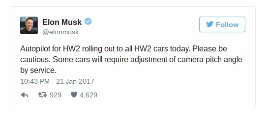 每一次 Tesla 向旗下電動車推送系統更新,都讓不少車主期待,尤其是系統更新牽涉自動駕駛(Autopilot)功能,更份外引來關注。日前 Tesla 的創辦人 Elon Musk 在 Twitter 宣佈,所有配備第二代硬件(HW2)和已啟動 Autopilot 功能的 Model S 和 Model X,都會獲得系統更新。