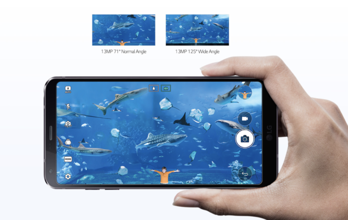 至於鏡頭方面,今次 LG G6 繼續沿用去年 G5 的雙主鏡頭設計,玩法同樣是一個一般鏡頭一個影 wide angle,而解像度則為 1,300 萬像素;至於前置的 500 萬像素鏡頭,亦可以影到 100 度超廣角 selfie。此外,今次亦加入了一些新模式,例如:指引攝影(Guide Shot),可以下面放一張相,然後上面就 Live 鏡頭,令揸機人可以照住來影,都幾體貼。
