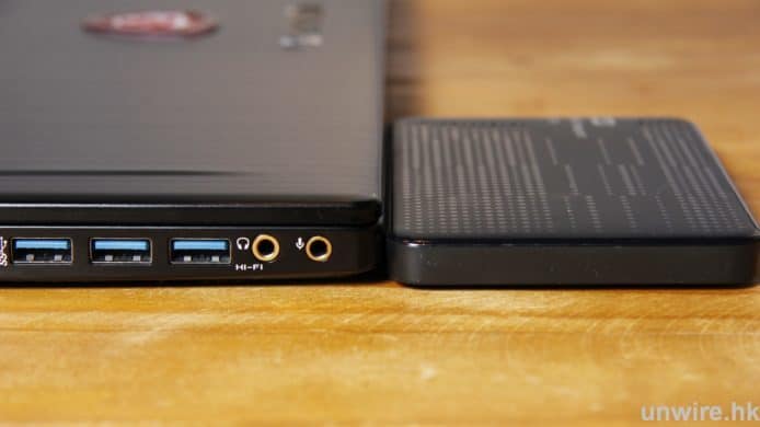 ▲與一般外置硬碟比較之下,以一款 Gaming Notebook 來說已經相當之薄。