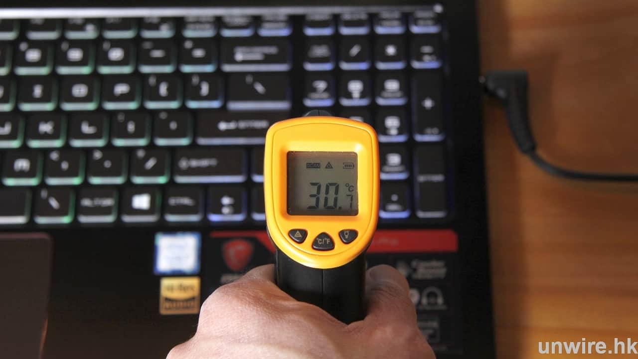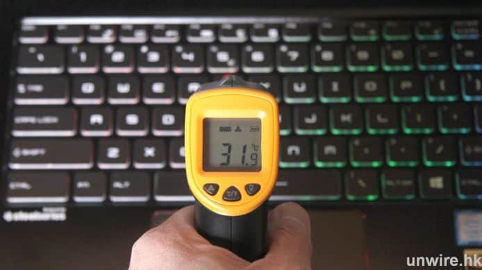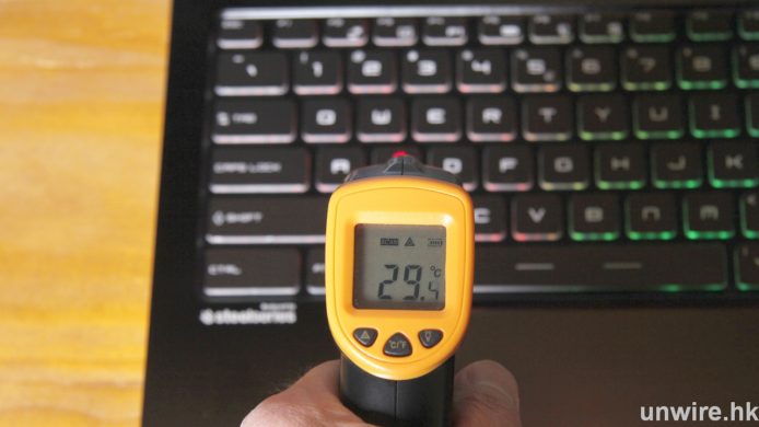 ▲進行遊戲 30 分鐘後,測試鍵盤左、中、右位置,溫度約為 30 度左右,打機就不會「辣手」。