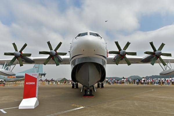這部由國家工業和信息化部門立項的水陸兩棲飛機 AG600,研發的目的是要用於森林火災和水上救援方面,是中國航空工業首次研發的大型特種民用飛機。AG600 的機體總長 36.9 米,機翼展開達 38.8 米,最大起飛重量為 53.5 噸。採用單船身、懸臂上單翼、T 型尾翼和前三點可收放起落架的船身式水陸兩棲飛機佈局,配搭 4 部國產的螺旋槳發動機,最大航程可超過 4,000 公里。
