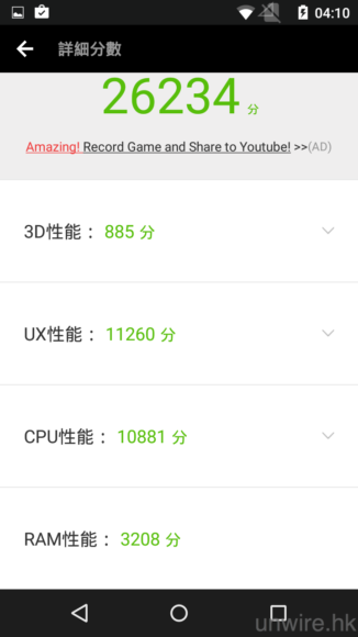 ▲以安兔兔評測測試,只獲得 26,234 分,以入門級電話來說算是合理。