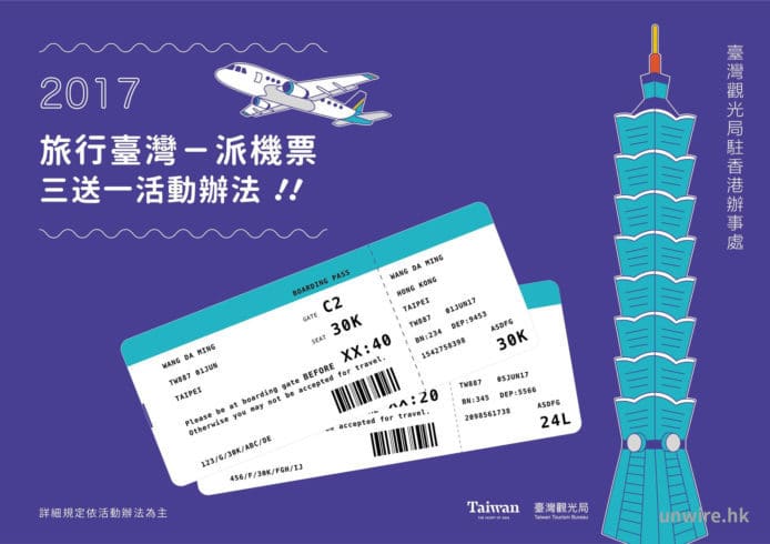 由臺灣觀光局駐港辦事處、中華航空、長榮航空、香港航空、遠東航空及澳門航空,主辦的名為『旅行臺灣-派機票』三送一活動由今日(4月10日)開始正式開始收取登記,只要你在2017年1月1日至8月31日之間,由香港或澳門入境到台灣旅遊3次或以上,就可以參加。當然,需要附上相應的登機證及郵輪房卡,及填寫其參加之表格,方可以申請。活動中每人可以換領三次,到底點先可以攞到「著數」?就由unwire 同你簡單睇下要點做啦。
