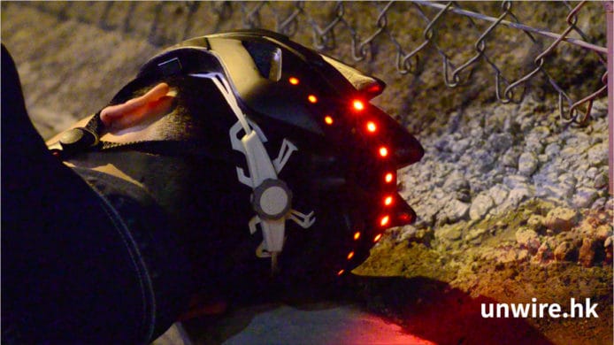 頭盔更配備了速度感應器,當感應到單車正在減速時,頭盔背面的剎車紅燈便會全數亮起。