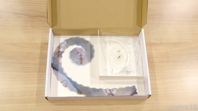 ▲打開包裝,有紙條、底座以及 LED 燈。