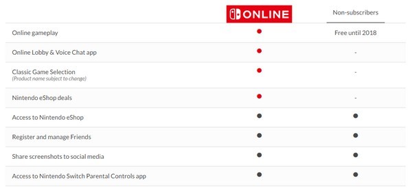 其實早在 Switch 推出之前,任天堂社長君島達就曾經表示過將會推出付費網絡服務將,以便提供更完善的網絡功能去滿足玩家需求。至於今日任天堂亦正式公開 Switch Online 更多細節,該項服務預定在 2018 年內推出,留意屆時除非加入成為會員,否則就無法進行網絡連線遊玩。收費方面則會有 12、3 及 1 個月選擇,價格分別為 19.99、7.99 及 3.99 美元(約 156、62 及 31 港元)。此外,Switch Online 會員另一個好處是可以免費玩到各款經典遊戲,之前官方曾表示過每月可免費下載一款遊戲,但如今已確認將可以無限免費任玩大量經典遊戲。現時已知這些經典遊戲全部都是來自紅白機,但任天堂表示會考慮加入各款超任遊戲。