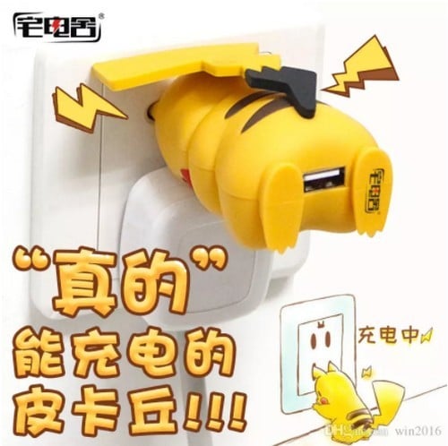 根據資料顯示這款產品名為「皮卡丘充電頭」,其外表看起來說好像是一個細小 figure,而官方亦強調造工及上色都相當精細。正常情況下這隻比卡超無法用來充電,但當大家將其雙耳外殼拔走,即會發現裡面是一對中國常用的圓腳插頭。這種特殊設計結果就帶來獨特使用方法,用家不但要將比卡超雙耳插入插蘇位,同時亦要在其雙腿之間插上 USB 線,如此一來便可以為各種電子產品充電,但當然動作看起來相當騎呢。