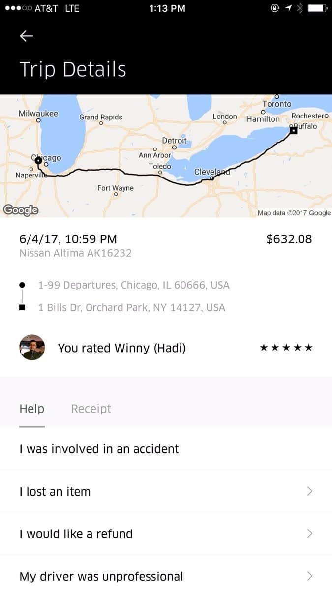 事件主角是 NFL 美式足球聯盟球員 Shareece Wright,他今個球季將會加盟水牛城比爾。早前當他準備由芝加哥飛到水牛城,報到並參予季前首課操練時,由於錯過了往水牛城的航班,最後決定電召 Uber 前往。由芝加哥到水牛城的車程超過 8 小時,單單車費就用了 632 美元(約 4,925 港元),加上沿途飲品等消費又花了近 3,000 港元,整個旅程就用了近 8,000 港元。