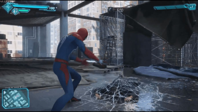 在Gameplay影片中展示不少Spider-Man的遊戲技能,除了放絲後跳躍,或放絲吊起物件攻擊敵人,例如影片中就有一幕放絲勾起吊臂,再將吊臂飛向敵人。蜘蛛絲還可以直接將敵人綁起來摔到地上,甚至用蜘蛛網封鎖敵人。影片中亦展現出不少超型的格鬥技。