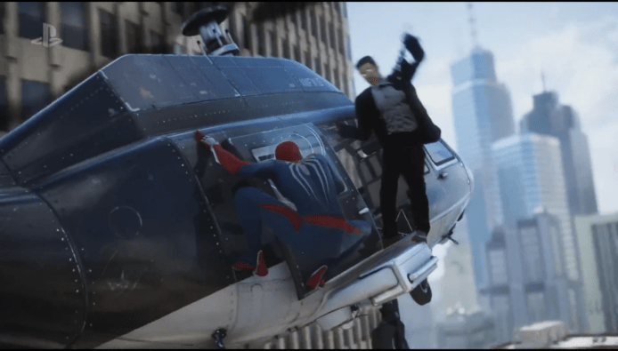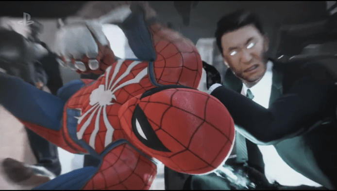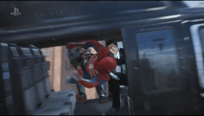 在E3的Sony發佈會中,公開的並非一般預告片,而是直接展示一段極為震撼的Gameplay影片,是實際遊戲中的其中一幕。在影片中一批Demons恐佈分子在建設中的大廈裡面大開殺戒,Spider-Man趕往現場,與對手展開一番追逐。而最後在墬毀的直升機中,找到殺人事件的幕後黑手,原來是Mister Negative!在影片中可看到金霸王Wilson Fisk通話。