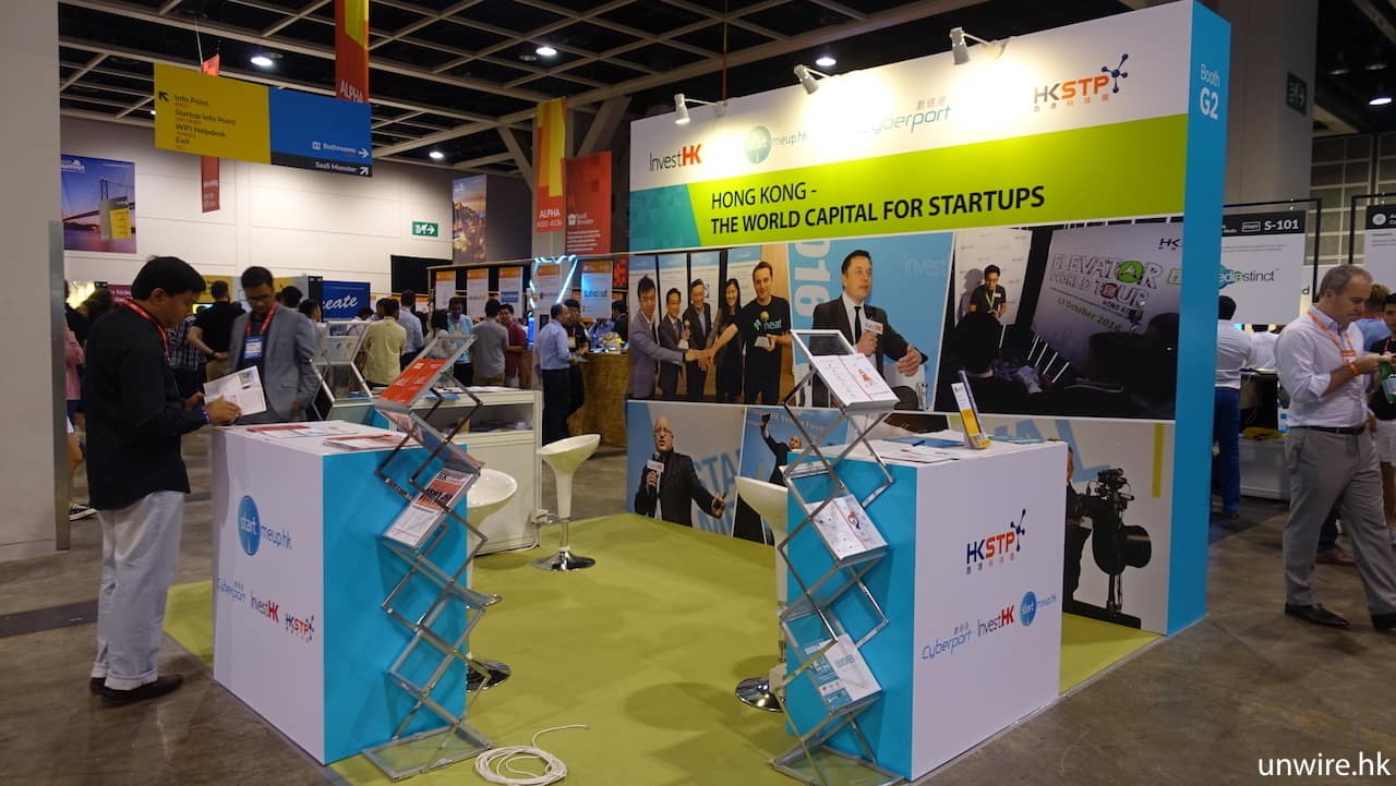 ▲ InvestHK、Startmeuphk、數碼港及香港科技園共用一個攤位。