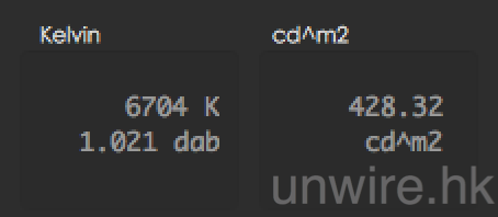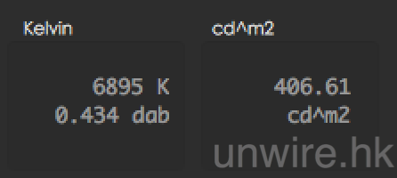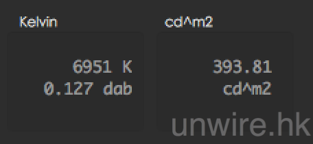 ▲以上 3 個白平衡測試的結果,分別是採用「逼真化」(第一張)、「sRGB」(第二張)及「DCI-P3」(第三張)colour profile 下的結果,大家可見如果以色溫準確度來說,肯定是 sRGB 最接近白色的 6500K,但其實另外兩個 colour profile 都不是相差很遠,所以大家按個人喜好選擇就可以了。